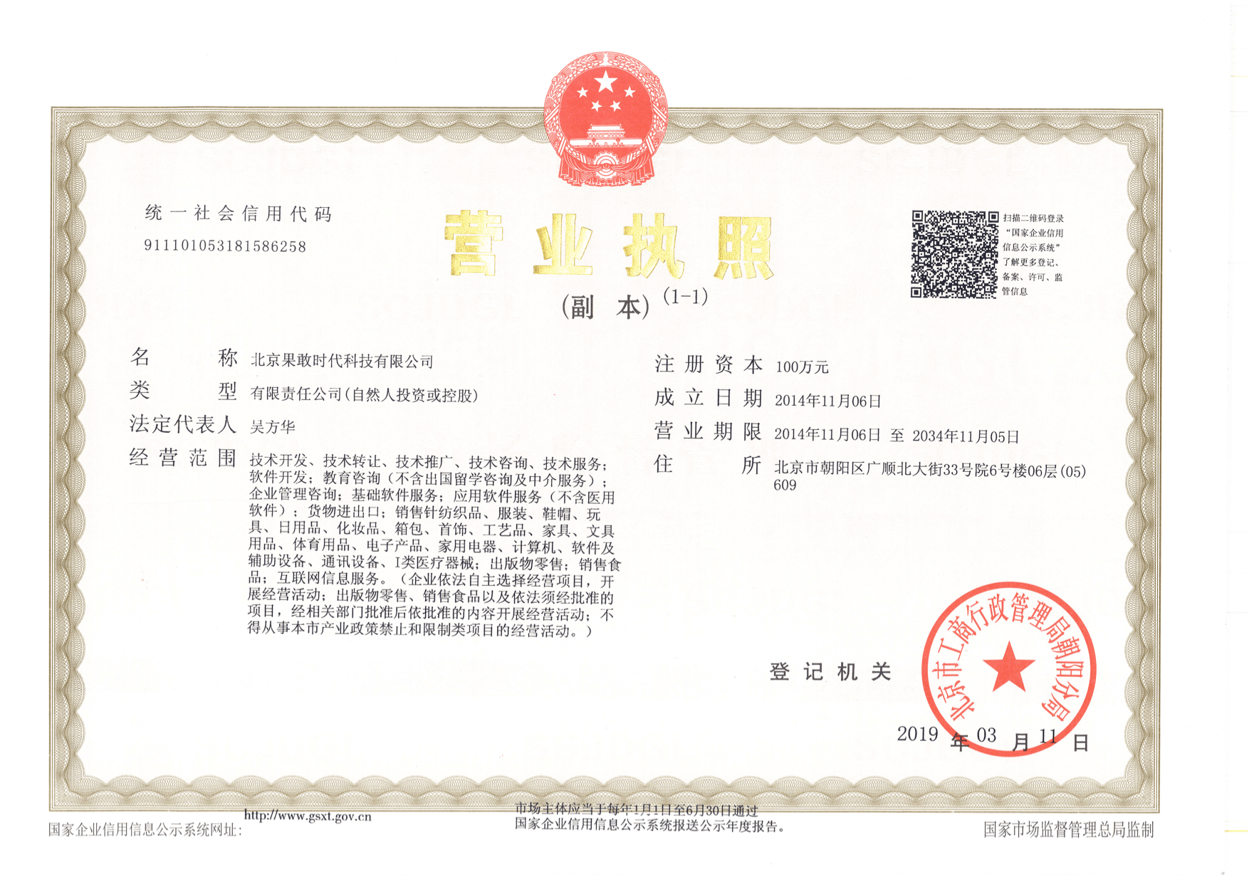 北京果敢时代科技有限公司 北京市朝阳区广顺北大街33号院6号楼06层(05)609